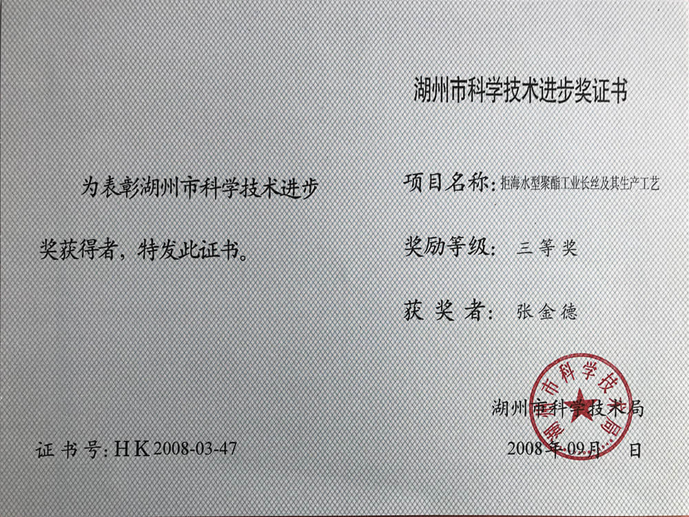 2008湖州市科技進步獎三等獎-張金德